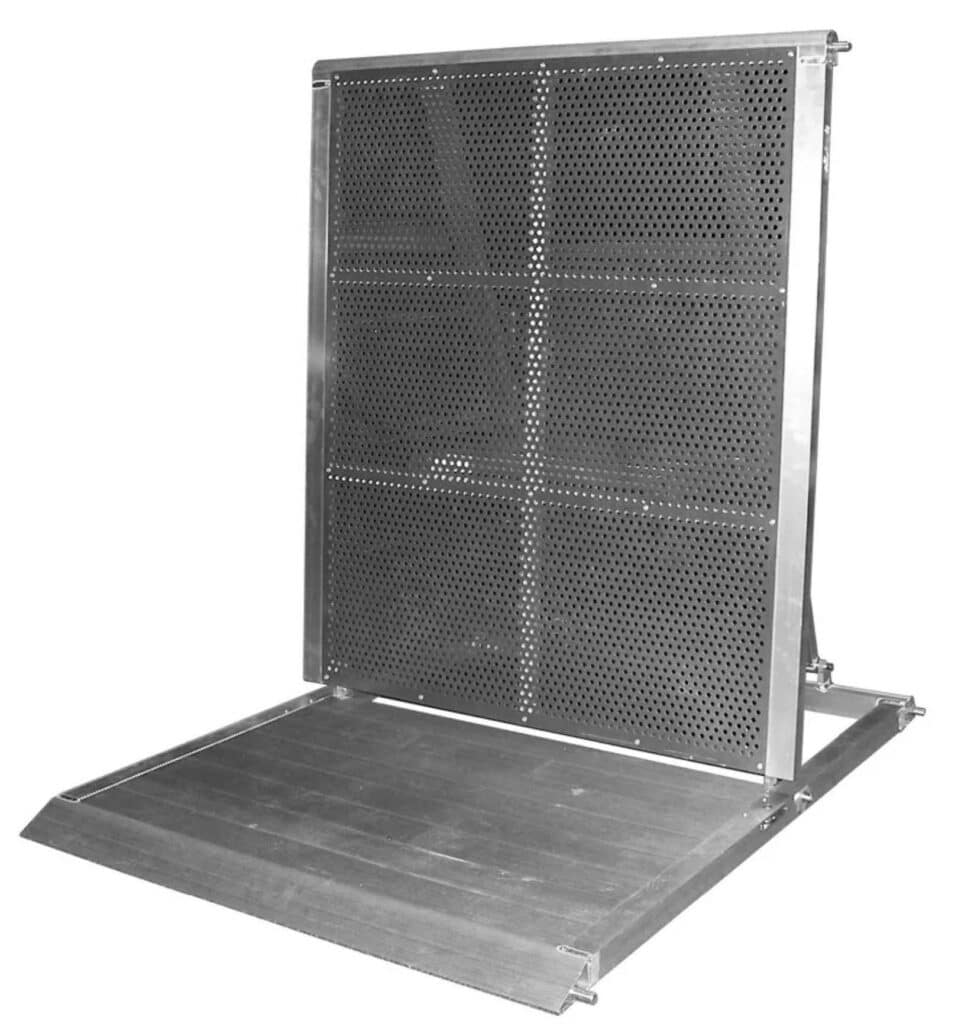 EM 950 är en stabil och funktionell lösning för säker publikavspärrning vid konserter, festivaler och andra evenemang. Barriären är tillverkad i aluminium, vilket ger en stark men relativt lätt konstruktion som är enkel att hantera på plats. Den fristående utformningen gör att den kan placeras utan behov av markförankring, samtidigt som den står stadigt även vid hög belastning.
