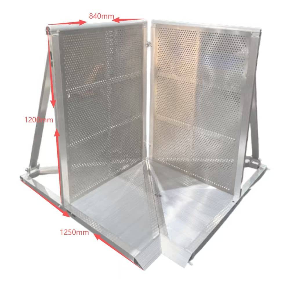 Denna hörnbarriär i aluminium är utformad för flexibel och säker avspärrning vid konserter, festivaler och andra evenemang där publikflöden behöver styras effektivt. Den fristående konstruktionen ger hög stabilitet utan behov av fast förankring, vilket gör barriären enkel att placera och justera efter behov.