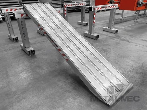 För att möta behoven hos personer som behöver flytta fordon med mycket tunga laster på ett säkert sätt har Metalmec utformat denna produktserie som, tillsammans med de profiler som används och de mekaniska processer som implementerats i produktion, säkerställer utmärkt prestanda. Serien levereras fräst i steg om 50/50 mm som standard och är särskilt lämplig för att flytta tunga fordon med stålband. På begäran kan produkten fräsas i korta steg om 25/30 mm om användaren önskar flytta tunga fordon med massiva gummihjul. De finns i olika bredder och med olika typer av förankringsflikar och är särskilt uppskattade av tillverkare av tunga släpvagnar eftersom de är perfekt anpassade till deras behov. Serien är tillverkade utan upphöjda kanter och levereras med de nödvändiga förankringskedjorna. Bild 1 är standard förankringsflik och resterande 2 bilder på förankringsflikar finns tillgängliga på beställning.