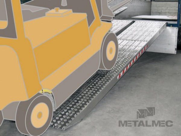 Den extruderade aluminiumprofilen som används vid tillverkningen av denna rampserie möjliggör förflyttning av fordon som väger upp till 26 ton. Tack vare den femtedels plåtbeläggningen på ramperna i M120S-AL-serien är de särskilt lämpliga för att flytta fordon med massiva gummidäck eller fordon med gummilarver. Den vulkaniserade gummibeläggningen på ramperna i M120S-R-serien gör dem idealiska för att flytta komprimatorvältar och fordon med stålband. Om de är slitna kan beläggningarna bytas ut separat eftersom de är fästa på ramperna med skruvar. Reservbeläggningar kan levereras på begäran. Dessa ramper finns i olika bredder med olika typer av förankringsflikar. Serien är tillverkad utan upphöjda kanter och produkten levereras med nödvändiga förankringskedjor. Bild 1 är standard förankringsflik och resterande 3 bilder på förankringsflikar finns tillgängliga på beställning.