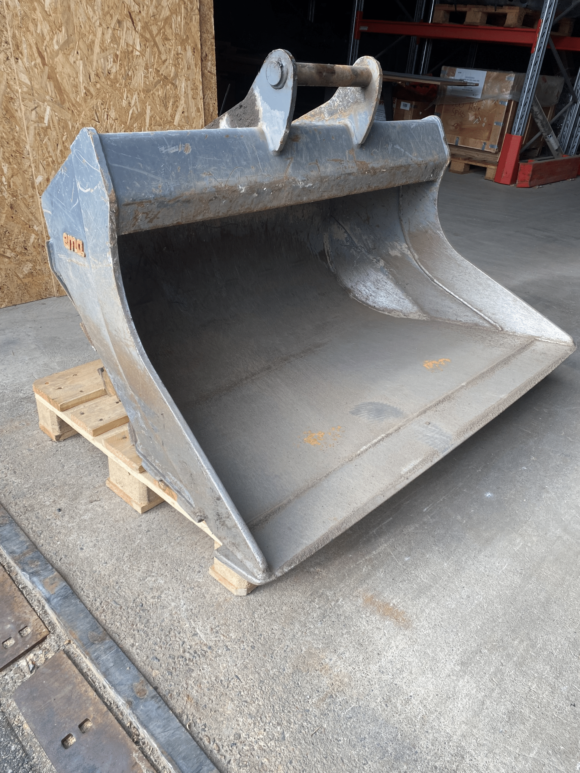 Begagnad planeringsskopa med S45 fäste. Den är i riktigt bra skick, så här får du mycket skopa för pengarna! Märket är EMA och denna är på 400 liter.