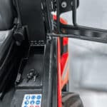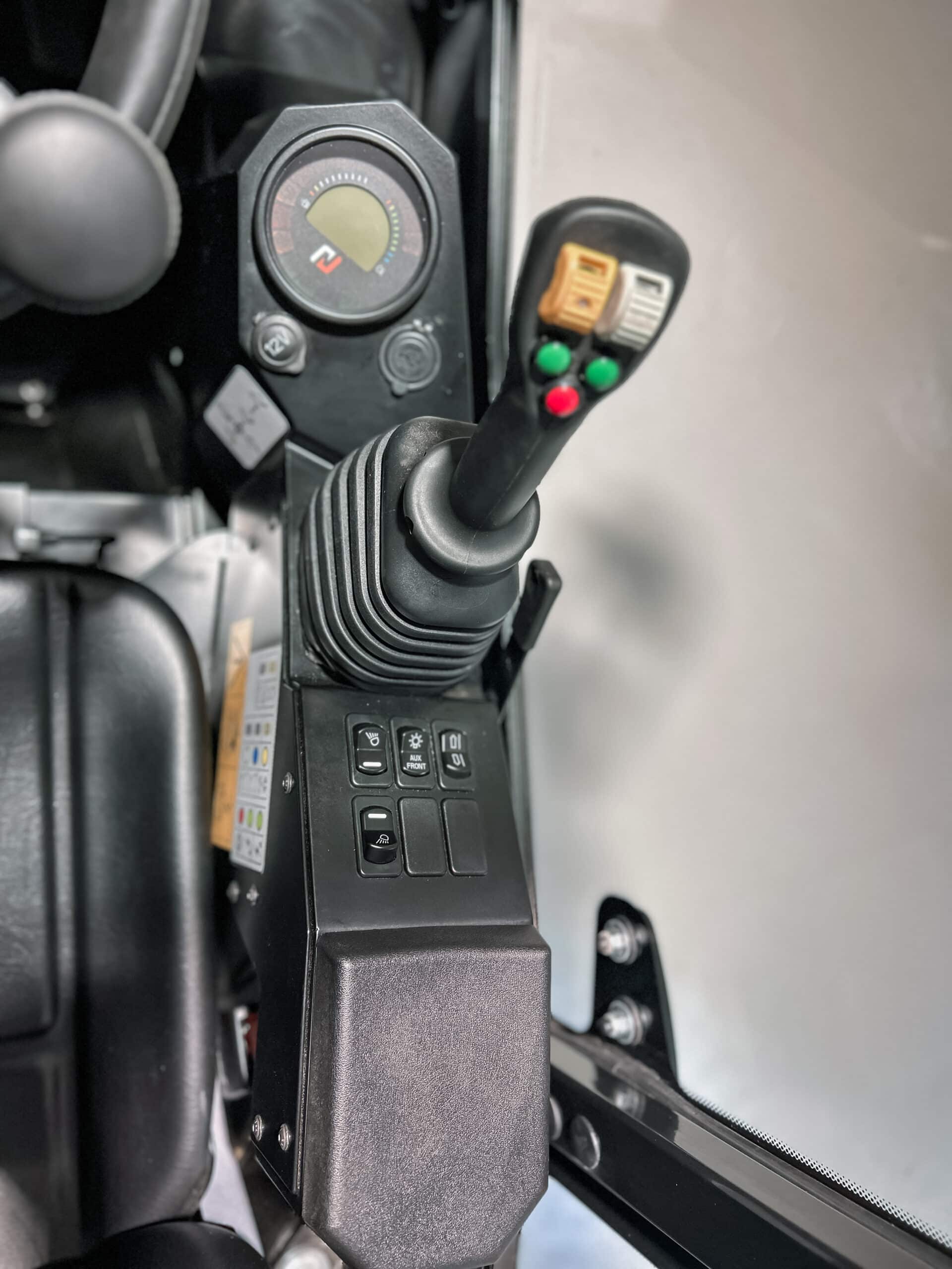 Denna modell är utrustad med Comfortpaket, som inkluderar ett avancerat hydraulsystem med ett extra dubbelverkande hydrauluttag (Hydraulkrets 1 D.A.) och elektrisk styrning. Systemet möjliggör anslutning och precis kontroll av hydrauliska redskap direkt från armstödet, vilket ger både snabb respons och hög funktionell flexibilitet. Tack vare den elektriska styrningen kan föraren enkelt aktivera och justera hydraulfunktioner med fingertoppskänsla, vilket minskar behovet av tidsödande manuella ingrepp.