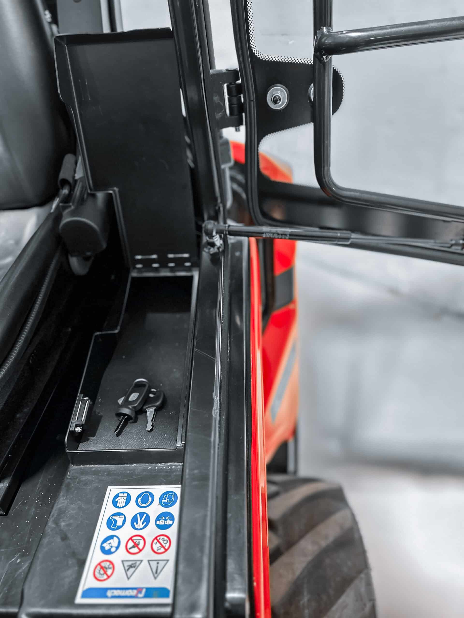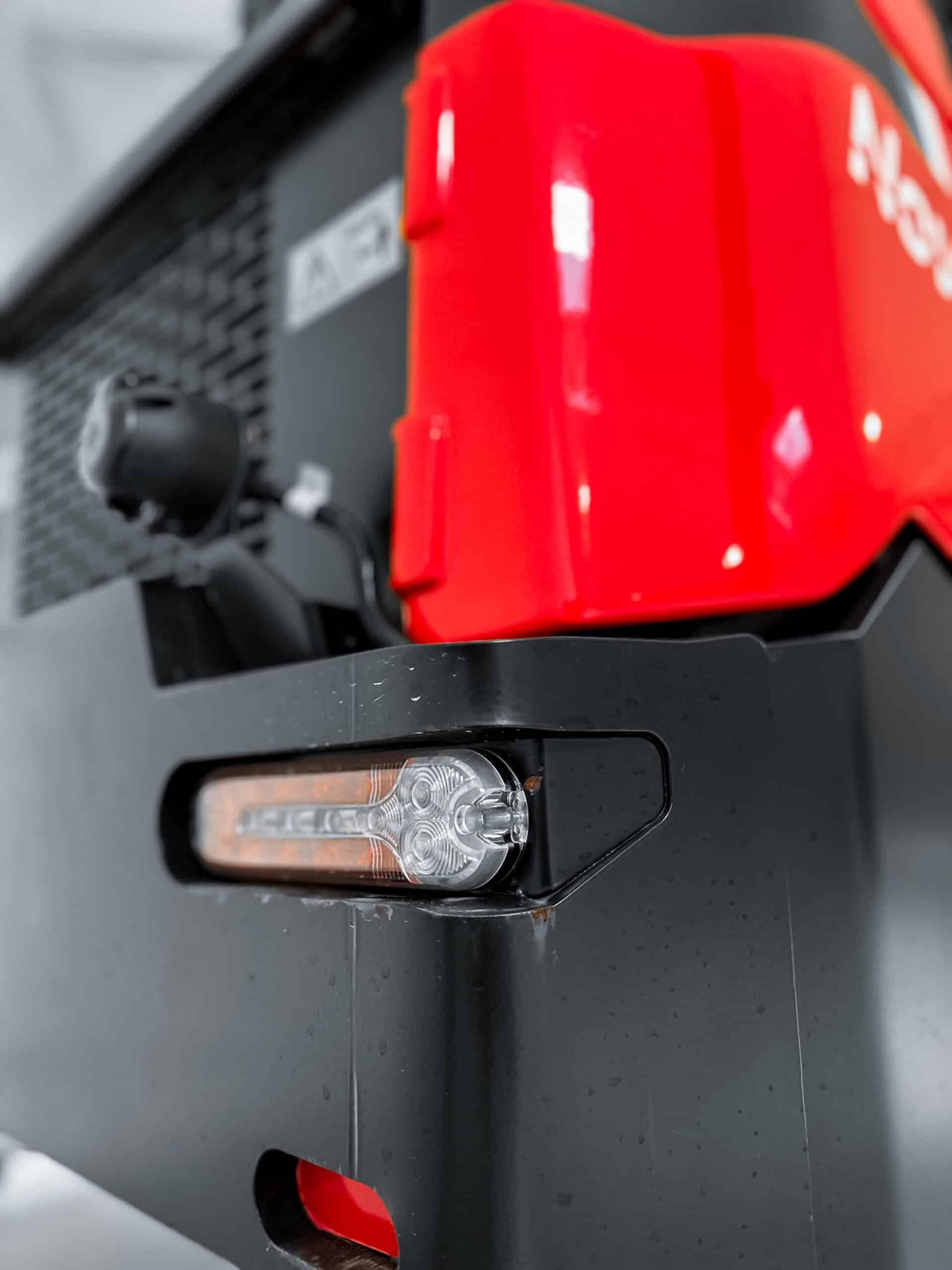 Denna modell är utrustad med vägtrafiksat, som innehåller allt du behöver för en säker och laglig transport på väg. Paketet innehåller LED arbetsbelysning, blinkers, backvarningsljud, vikbar varningsfyr, vänster och höger backspegel, nummerplåtshållare samt ett bakre 7-stifts uttag.