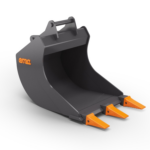 Med en bredd på 410 mm och en kapacitet på 50 liter ger djupskopan god balans mellan effektiv materialhantering och exakt grävning. De tre J200-tänderna säkerställer ett bra grepp i marken och underlättar arbete i både jord, lera och lättare stenigt material. Skäret med dimensionen 16 x 110 mm bidrar till ökad slitstyrka och lång livslängd även vid frekvent användning.