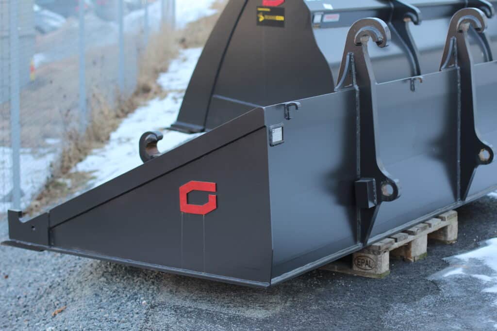 Gjerstads frontplaneringsskopor är utvecklade för att klara hårt professionellt bruk. Den robusta stålkonstruktionen, förstärkta gavlarna och de kraftiga slitstålskanterna säkerställer lång livslängd och minimalt underhåll. Skopan ger dessutom utmärkt synlighet från hytten, vilket underlättar precisionsplanering och detaljarbeten.