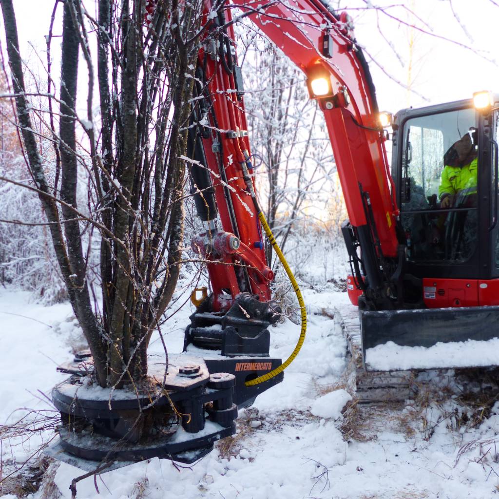 Intermercato Trädstöd för extra stabilitet och kontroll under klippning, går dessa modeller att utrusta med trädstöd, vilket minskar risken för att trädet rör sig under klippningen och ökar säkerheten.