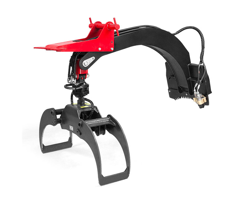 Timmergripen är utrustad med rotor med 360° rotation. Timmergripen griper tag i och flyttar timret även vertikalt vilket möjliggör förflyttning även i trånga utrymmen. Den är även utrustad med en krok för rep eller kedjor för att dra eller flytta timmer.
