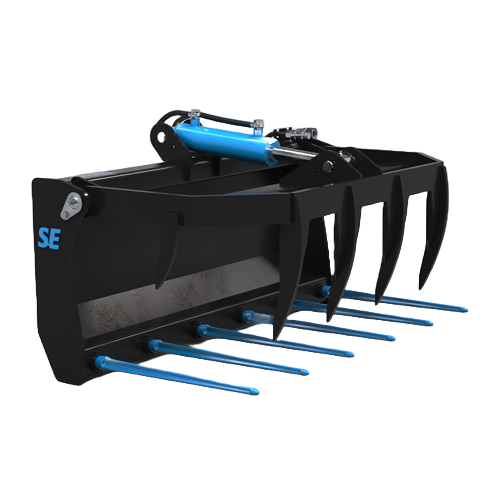 SE Equipments krokodilgrep är det perfekta redskapet för kompaktlastare som används i tuffa och materialintensiva arbetsmiljöer. Med sin smarta konstruktion, kraftfulla prestanda och precisionstillverkade komponenter erbjuder den en effektiv och hållbar lösning för greppkrävande uppgifter som rishantering och ensilageflytt. Bredd: 900 mm – kompakt och manövrerbar i trånga utrymmen. Öppningsintervall: 88–1222 mm – flexibelt grepp för varierande material. 1 hydraulcylinder – robust och driftsäker funktion. Överkäke med cirkulär rörelsebana – spjuten följer materialet för minsta möjliga motstånd. Extra vassa spjut – förbättrar genomträngning och effektivitet. Konade hylsor i både under- och överkäke – ger säker passform och lång hållbarhet.