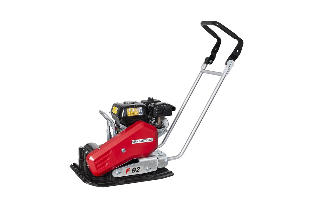 Swepac Vibratorplatta F92 är en framåtgående markvibrator, lämplig för att packa sand, grus, makadam och marksten. Den har en bensinmotor från Honda på 3,6 kW. Med vulkollanplatta (tillbehör) monterad under bottenplattan avjämnas stenbeläggningar effektivt.