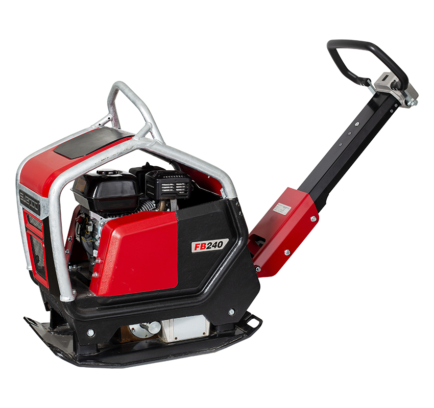 Swepac FB240 (utan joystick) är en bensindriven fram/backgående markvibrator med hög packningskapacitet. För packning av sand, grus, makadam och marksten. FB240 har remdrivet vibratorsystem och gånghastigheten är steglöst ställbar. Den robusta skyddsramen skyddar motorn effektivt mot yttre skador och är försedd med en stark och kraftig lyftögla. Det kompakta utförandet gör maskin lämplig i rörgravar och andra begränsade utrymmen. Med vulkollanplatta (tillbehör) monterad under bottenplattan avjämnas stenbeläggningar effektivt. Gemensamt för Swepacs maskinmodeller är att de är smidiga och lättjobbade. De är också stryktåliga och driftsäkra, vilket betyder låga drifts- och underhållskostnader.